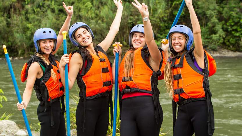 Das Team besteht aus 4-12 Personen, inklusive einem Guide, der die Gruppe vor und während der Fahrt anleitet und das "Raft" steuert, das aus stabilem Gummi und Luftkammern besteht und zwischen 3,6 und 5,8 Meter lang ist. Zur Fortbewegung im Wasser werden Stechpaddel benutzt, von denen jedes Teammitglied eines hat. Logisch, dass hier alle gut und koordiniert zusammen arbeiten müssen, damit das Schlauchboot erfolgreich durch Strömungen und Stromschnellen manövriert werden kann! Wasserscheu sollte man bei diesem Spaß jedenfalls nicht sein.