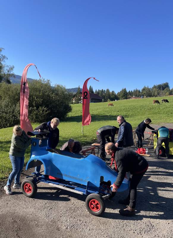 Urig, originell – Seifenkisten, nette Mesnchen und der herrliche Blick in die Berge. Die Seifenkisten-Sensation findet ihr in und um den Event-Stadel in Oberstaufen oder mobil an eurer Wunschlocation. Die herrliche Südhanglage im Allgäu, inmitten von Wiesen und Bäumen ist der optimale Standort für ein Erlebnis der besonderen Art. In Teams werden die Seifenkisten aus Bauteilen zusammengebaut. Anschließend findet ein unterhaltsames, spannendes Rennen mit „Boxen-Stopp“, „Rad-Wechsel“ und „Auftanken“ statt.