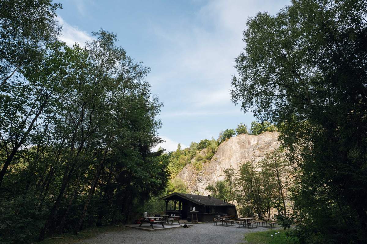 - Miete der Outdoor-Location inkl. See, Felsen, Hütte und Wald