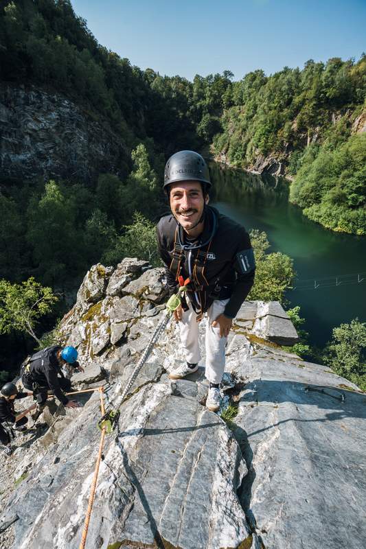 Nach der Anreise ins Sauerland werden Sie auf einer schönen Waldlichtung bei Schmallenberg begrüßt. Nicht mehr weit und Sie erspähen durch den Stollen das türkisfarbende Wasser des Bergsees. Umgeben von der einmaligen Kulisse der steilen Felswände warten viele spannende Abenteuer auf Sie: eine Seilrutsche (Flying Fox) hoch über dem See (100m lang und in 60m Höhe), Abseilpisten, Klettersteige, Höhlen, Floßbau-Aktionen und vieles mehr.