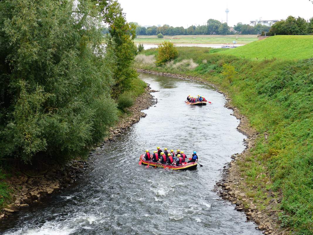 Diese Tour startet nach einer Einweisung auf einem Nebenfluss des Rheins. Nach rund 30 Minuten erreichen Sie schließlich den mächtigen Strom und genießen eine unvergessliche Fahrt auf einer der größten Wasserstraßen Europas. Nachdem der Neusser Hafen und verschiedene Brücken passiert werden, lassen sich die Teilnehmer am berühmten Altstadtpanorama Düsseldorfs vorbei treiben. Natürlich müssen alle Teams im Boot fleißig paddeln, um schließlich nach ca. 2,5 Stunden ihr Ziel zu erreichen. Nördlich der Altstadt werden die Teams ihre Boote dann an Land ziehen.