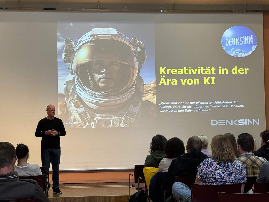 Themen wie Kreativität, Innovation oder Transformation sind ohne die neuesten Entwicklungen im Bereich der generativen künstlichen Intelligenz nicht mehr denkbar. KI hat daher in all meinen Vorträgen einen festen Platz, ohne dass es das Kernthema sein muss. Dabei beleuchte ich sowohl die Chancen, als auch die Gefahren der Technik.