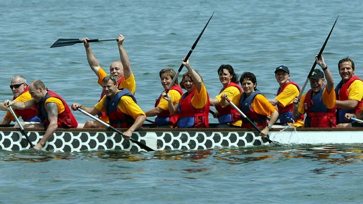Im Drachenboot ist es genauso wie in einem Unternehmen: Es gibt einen, der auf der Trommel den Takt vorgibt und nur, wenn die Mannschaft im Einklang paddelt, kann das Ziel erreicht werden.