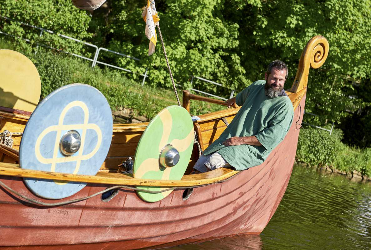 Von Mitte April bis Mitte Oktober wird auf dem originalgetreu nachgebauten Wikingerschiff im Gleichtakt gerudert und das Ruhrtal erobert.