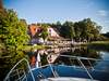 - Stehtische auf der Terrasse und Fackeln am See