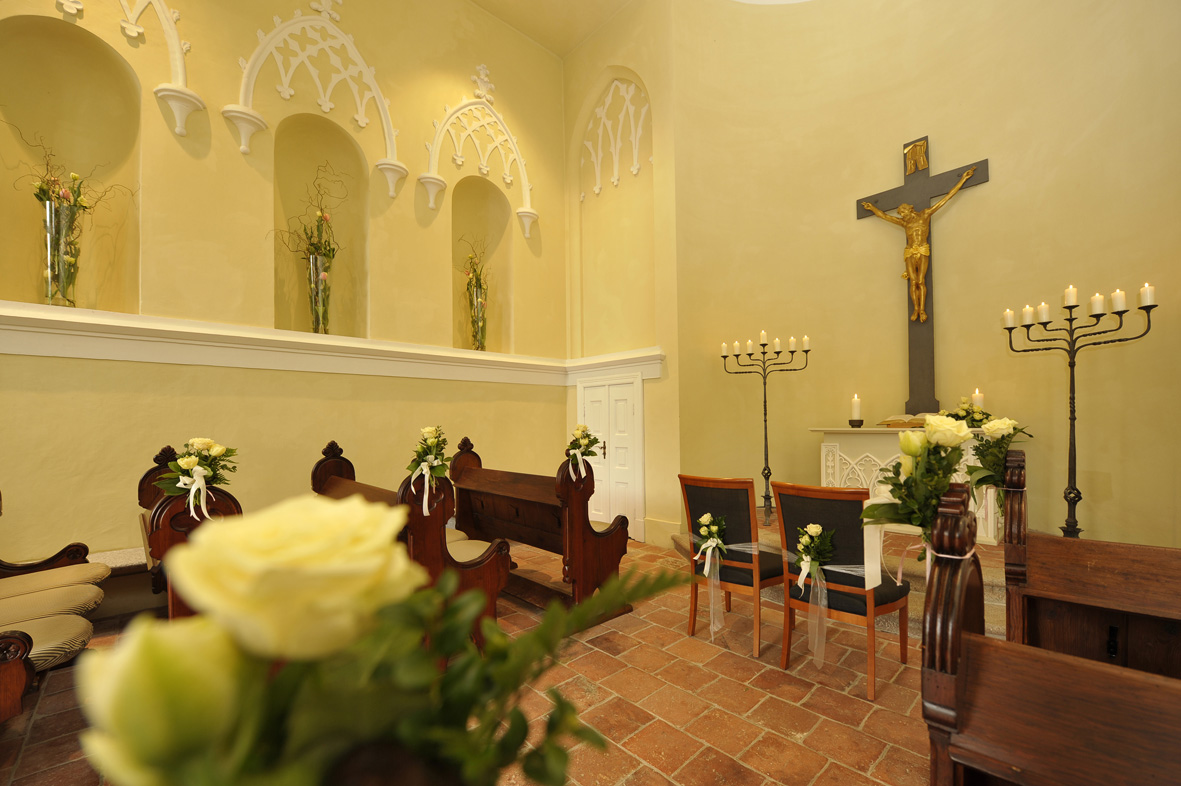 Die romantische Schlosskapelle am weltberühmten Nymphenbrunnen von Walter Schott dient als perfekter Schauplatz für Traumhochzeiten. Im Schloss selbst kann standesamtlich geheiratet und ausgelassen gefeiert werden.