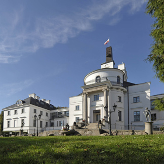 Zahlreiche elegante Salons mit wertvollen Antiquitäten laden zum Verweilen ein. Ein 180 Hektar großer, nach englischem Vorbild geschaffener Landschaftspark mit reichem Wildbestand in der Privat-Jagd, 3 Seen, angelegten Reitwegen mit Naturhindernissen sowie 36 Denkmälern umgibt das Anwesen.