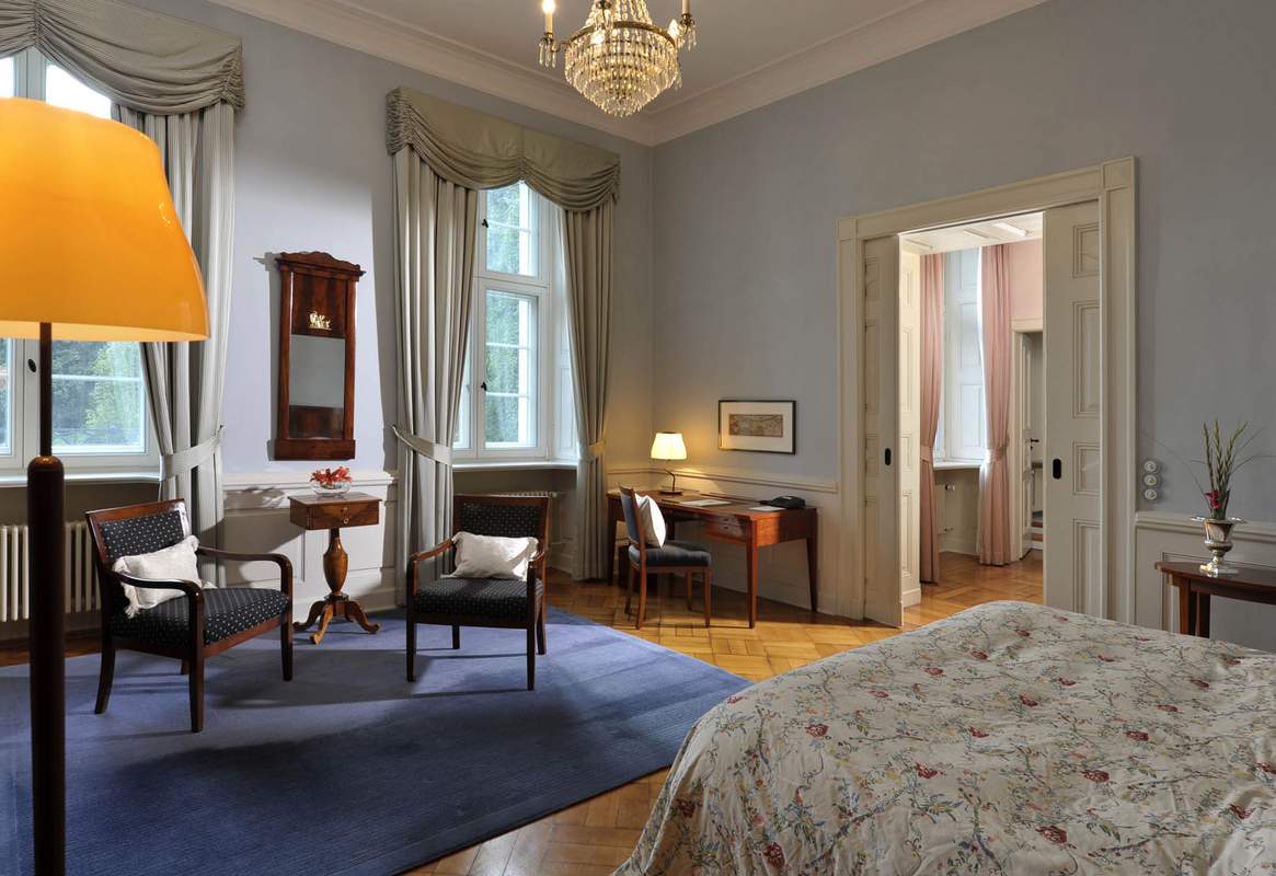 Genuss-Oasen – wie das Gourmet-Restaurant im Wappen-Saal, die Brasserie Louise, die Hotelbar L´Orchidée, der Schlosskeller sowie elegante Salons und Festsäle – lassen Feinschmecker-Herzen höher schlagen.