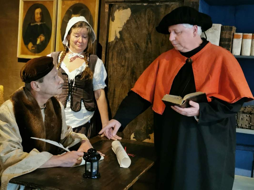 - Ein zertifizierter Stadtführer und zwei Schauspieler