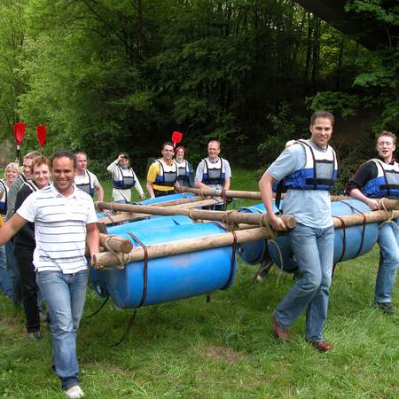 Floßbau als Teamaufgabe, eine wirkliche Herausforderung! Hier sind weniger sportliche Höchstleistungen erforderlich, sondern Teamgeist, Kreativität und Spaß! Bauen Sie mit den vorgegebenen Materialien Ihr Floß und fahren Sie den anderen davon.