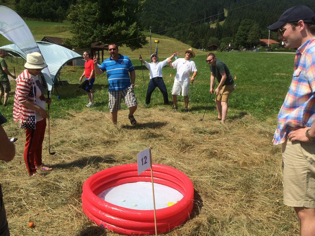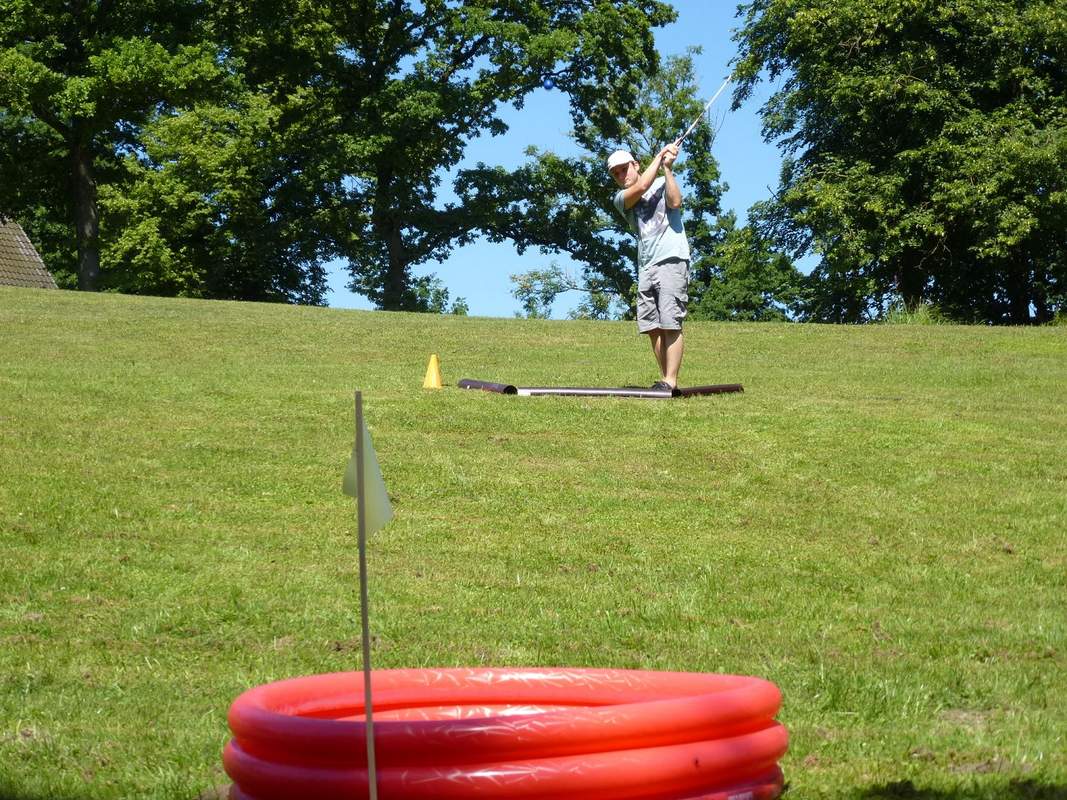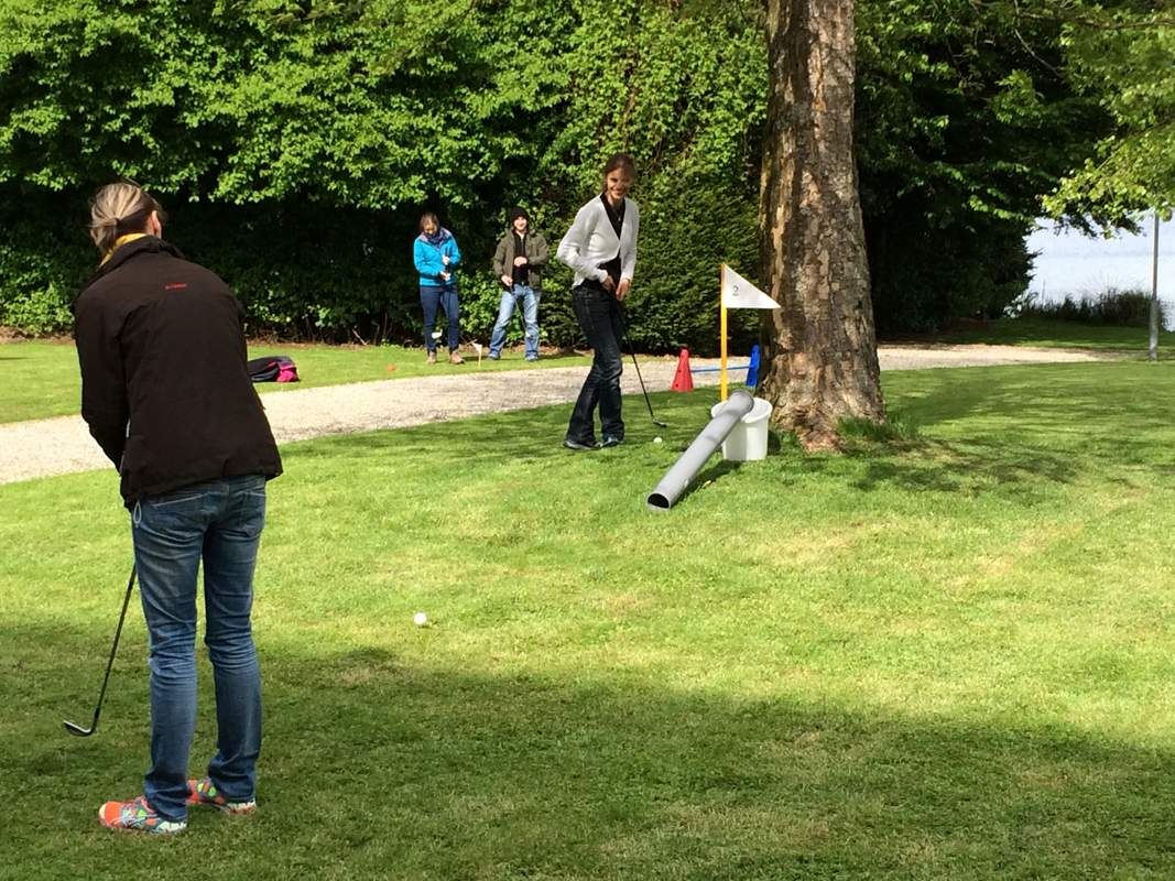 Wer legt schon Wert auf Platzreife und Handicaps?? Freier Golfsport für alle ist die Devise! Einfach Schläger nehmen und drauf los! Na ja, ganz so einfach ist es auch nicht. Die Teilnehmer erhalten eine Einweisung in einige Grundzüge der richtigen Schwung- und Schlagtechnik. Nach den ersten Probeschlägen geht es dann aber auch schon los. Gespielt wird im freien Gelände über Stock und Stein, Hindernisse bietet Mutter Natur genug. Zusätzlich werden noch einige künstliche Geschicklichkeitsstationen mit eingebaut. Die Löcher bzw. Ziele sind aber nicht leicht zu finden, hierfür werden die GPS-Receiver und eine gute Orientierung benötigt. Die benötigten Schläge jedes Teams werden auf der Scorecard vermerkt, das Team mit den wenigsten Schlägen siegt!