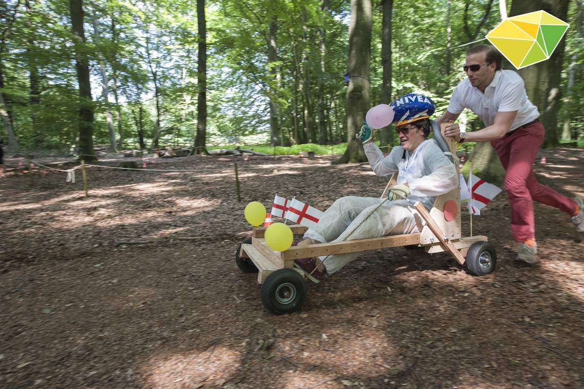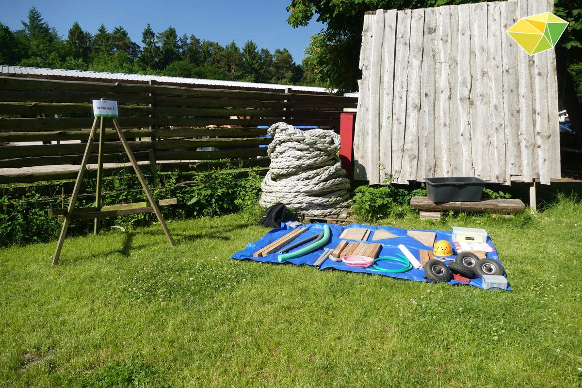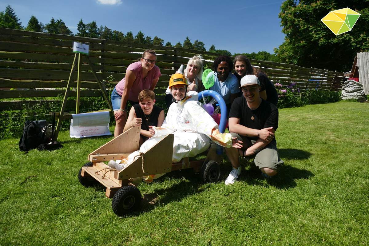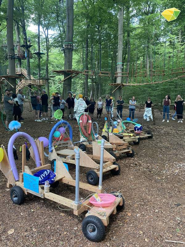 Aus flexiblen Bausätzen konstruieren die Teilnehmer*innen in kleinen Teams abenteuerliche und kreative Seifenkisten.