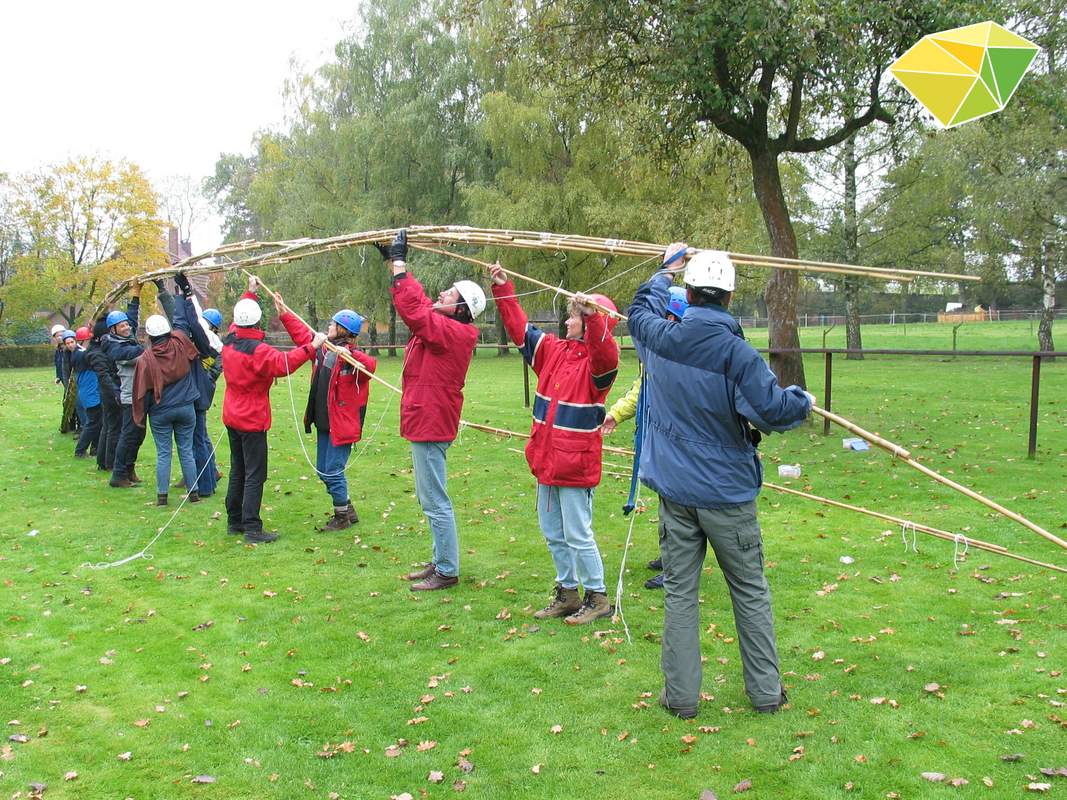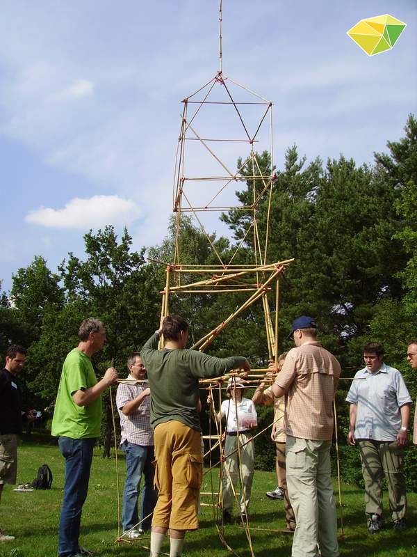 Das Bauprojekt Turmbau stellt deinem Team die Aufgabe, gemeinsam ein Bauwerk zu erstellen oder in kleinen Teams parallel an Teilabschnitten dieses Bauwerkes zu arbeiten. Als Baumaterial wird Bambus verwendet und dieser muss zu einem höchstmöglichen Turm verbaut werden, der gleichzeitig auch noch stabil sein soll. Wird in kleinen Teams gearbeitet, müssen in einer zweiten Bauphase die Teilabschnitte... zu einem großen Ganzen zusammengefügt werden.