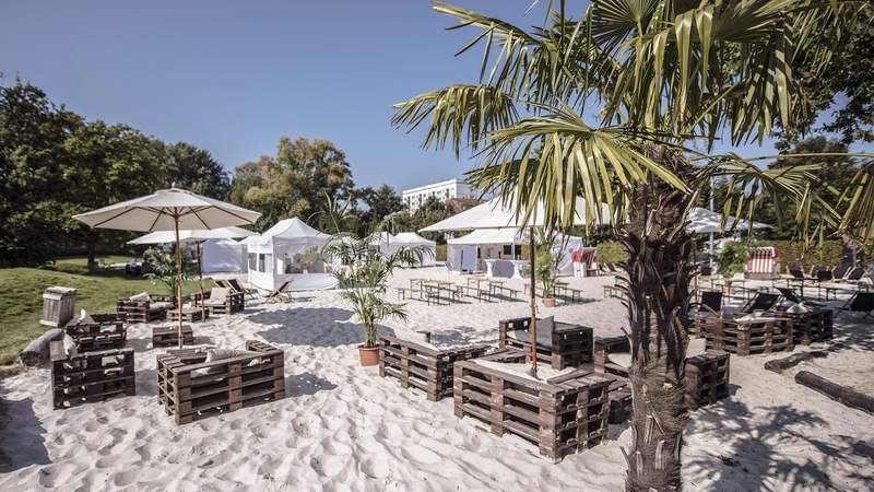 Du planst gerade ein Event für den Sommer, um Deine Mitarbeiter, Kollegen oder Freunde zu überraschen? In Hamburg bieten wir Dir die Möglichkeit, den Sommer zu erleben und sich wie im Urlaub zu fühlen. Auf einer großzügigen Outdoorfläche (etwa 8.000 m²) mit Freibad, Liegewiesen und karibisch weißem Sandstrand gestalten wir Deine ganz individuelle Lounge und planen mit Dir ein passendes Rahmenprogramm – von einer gemütlichen Lounge unter Palmen für kleinere Gruppen bis hin zur eigenen Erlebniswelt für Deine gesamte Firma.