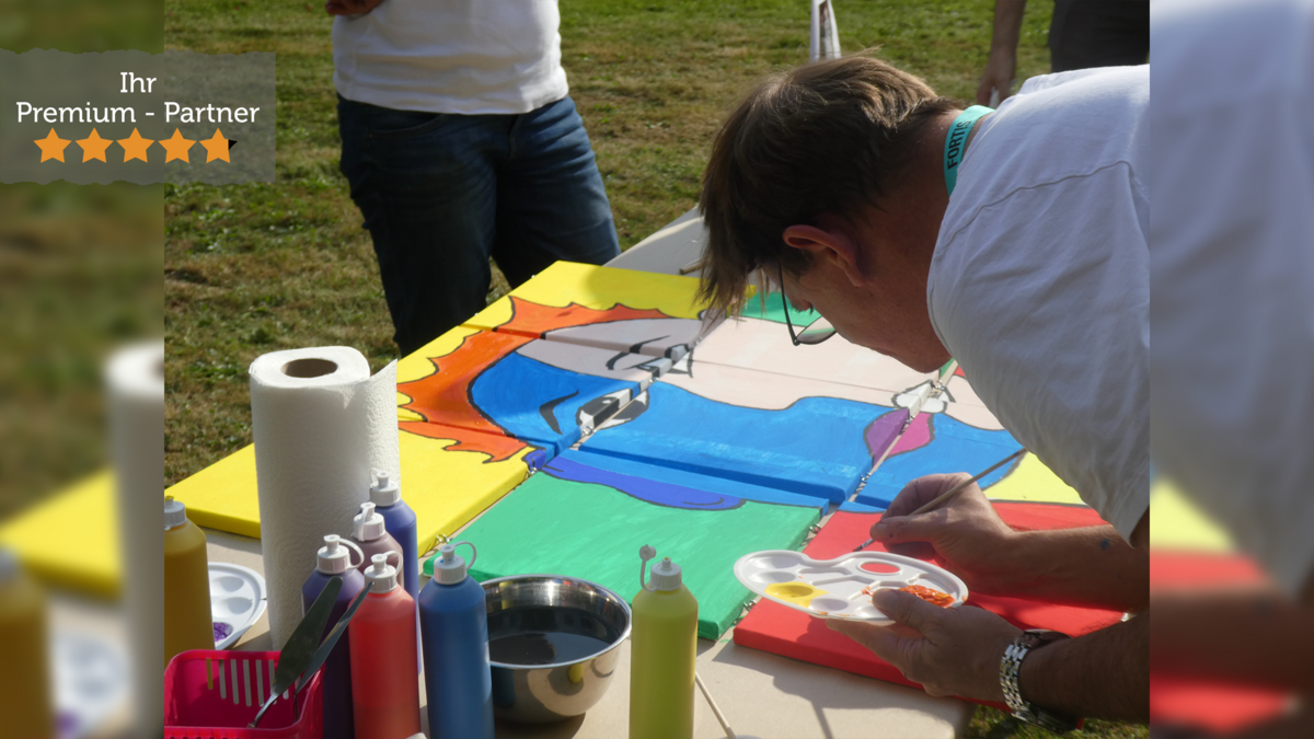 Die Anleitung wurde sehr kurzgehalten. Unser Team hätte mehr Anleitung, mehr Struktur für das Teambuilding gewünscht. Eventuell die Bezeichnung des Teambuildings überdenken, denn man stellt sich unter Action Paintig auch „Action“ vor. In unserem Teambuilding haben wir mehr Stillarbeit und Fleißarbeit erlebt. Aus der Beschreibung auf der Website geht auch nicht klar hervor, was den Teilnehmendenkreis erwarten und vermischt sich mit den anderen Optionen.