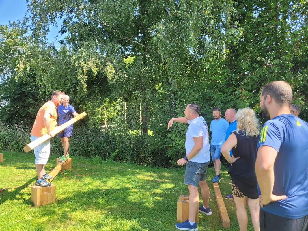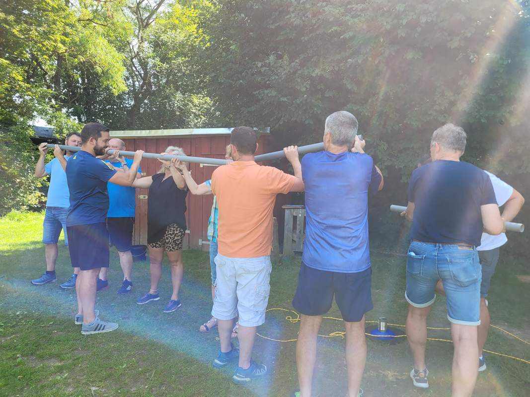 Es wurde letztlich ein Floßbau-Event gebucht, dieses war klasse. Das Wetter hat mitgespielt, es war eine super Atmosphäre, die Einweisung hat gut geklappt, die Verantwortlichen vor Ort waren sehr freundlich und alle Teilnehmer hatten sehr viel Spaß.