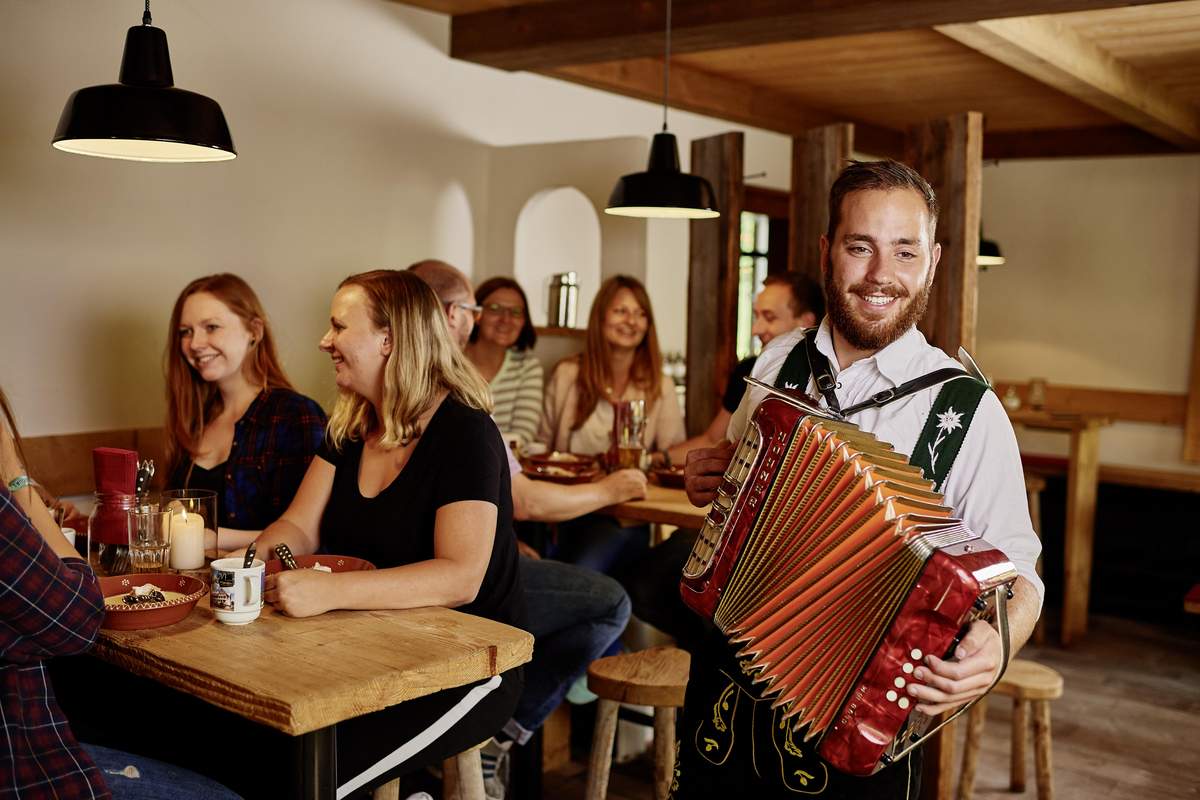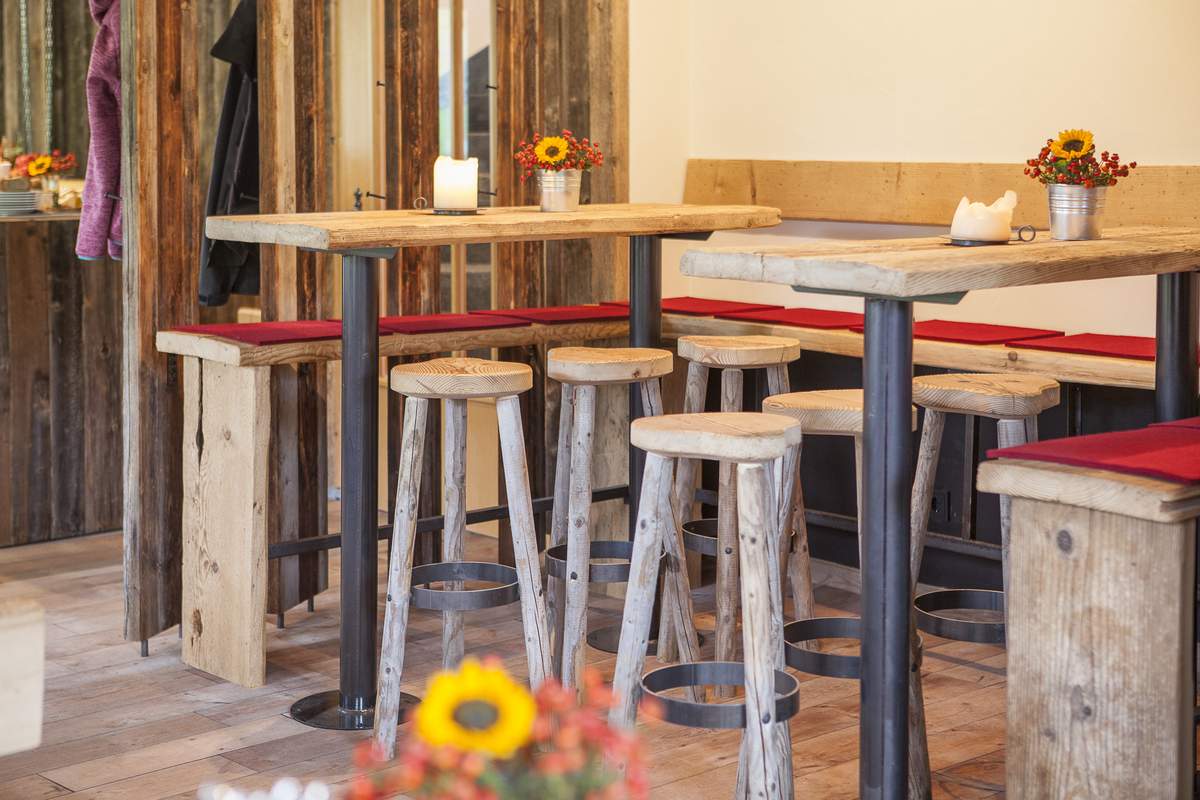 Die Alpe Oberstdorf bietet 60 Sitzplätze in rustikalen und gemütlichen Stuben und 100 Plätze auf der Sonnenterrasse mit Liegestuhlverleih.