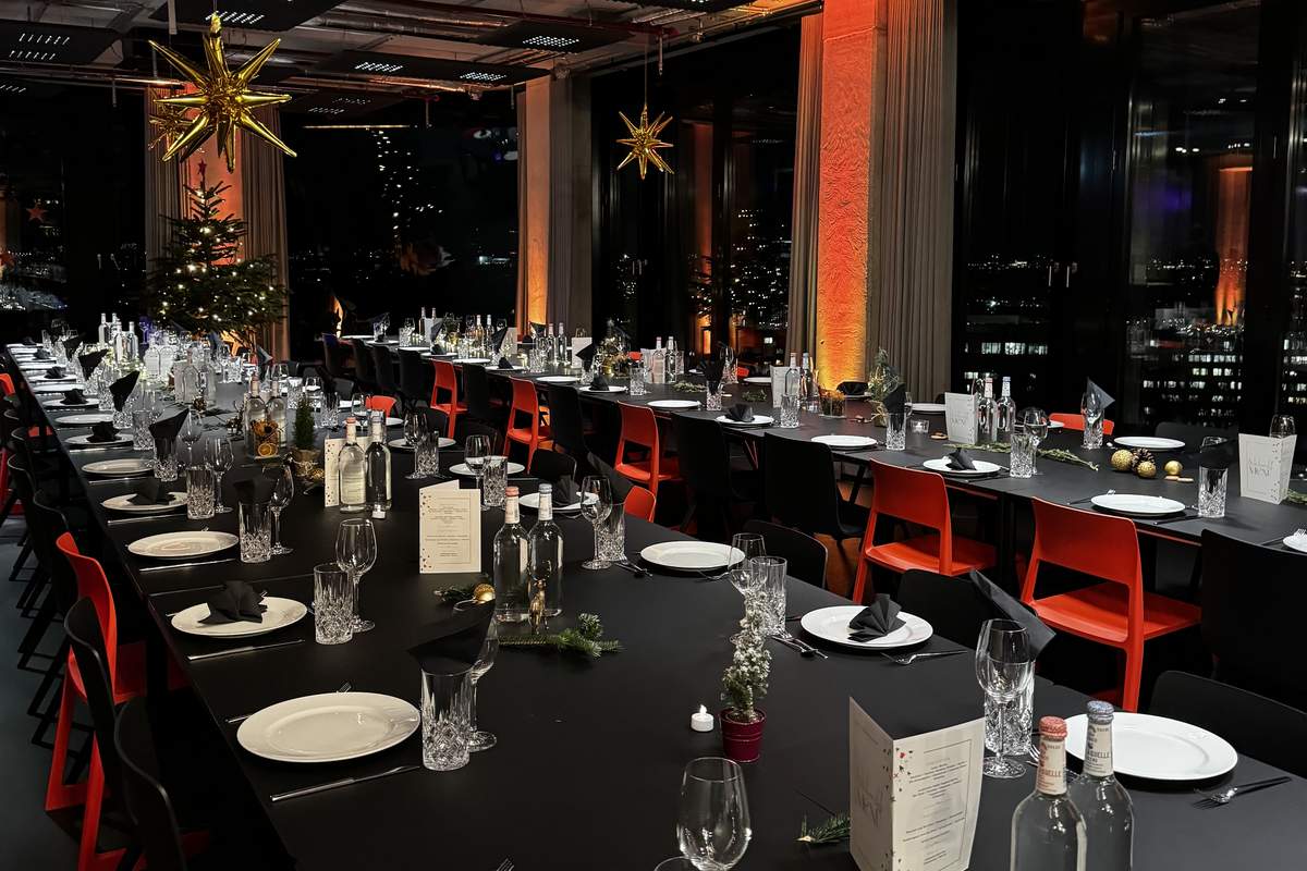 Sie wollen an Weihnachten kulinarisch ganz hoch hinaus? Und als Nachtisch den schönsten Blick über das Panorama von München genießen? Mit uns hoch über den Dächern Münchens können Sie beides! Begleiten Sie uns hinauf zum SkyEvent – und genießen Sie ein einzigartiges Panorama und Ambiente. Begeben Sie sich in luftige Höhen und speisen Sie in einer extravaganten Location. In dieser fantastischen Location mit einer atemberaubenden Sicht auf das Lichtermeer der Stadt organisieren wir Ihnen einen schönen und geselligen Abend.
