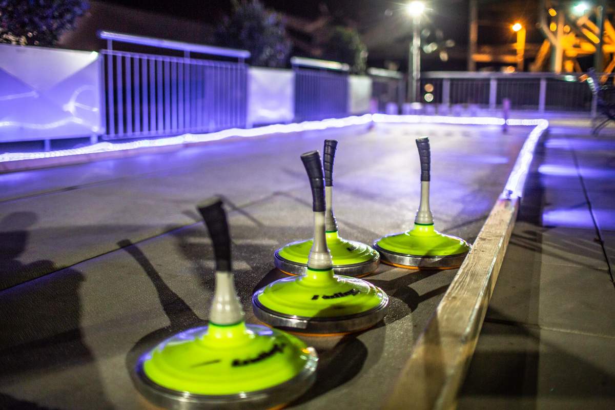 - Eisstockschießen mit zwei Bahnen