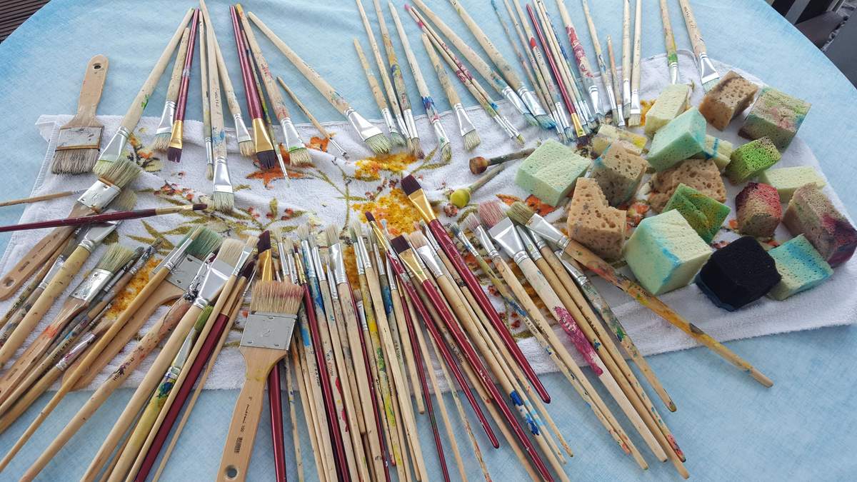- Alle benötigten Materialien / Farben / Leinwände / Utensilien