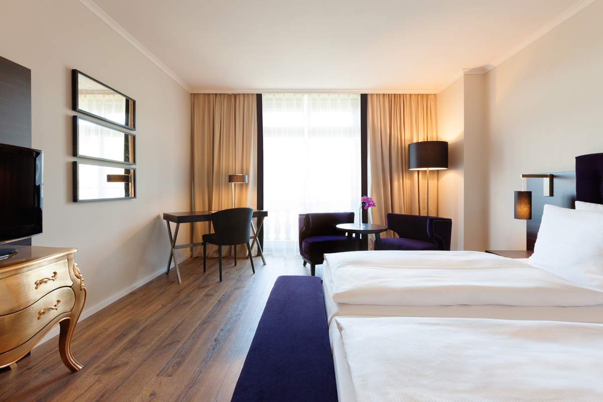 Die 127 großzügigen Zimmer sind selbstverständlich mit allem modernen Komfort ausgestattet: Schreibtisch, Telefon, SAT-TV, Radio, Safe, Minibar und WLAN. Sauna, Fitnessmöglichkeiten und Massagen auf Anfrage sorgen für einen entspannten Aufenthalt.