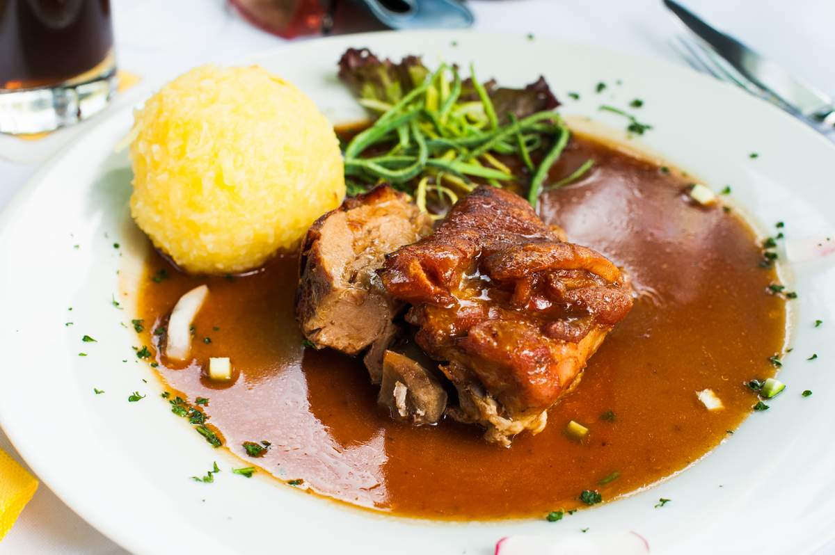 Typisch Thüringer Abendessen im traditionellen Köstritzer Schwarzbierhaus „Zum Güldenen Rade“.