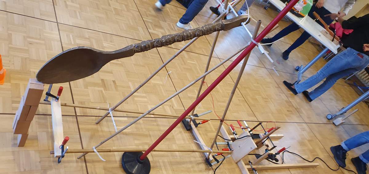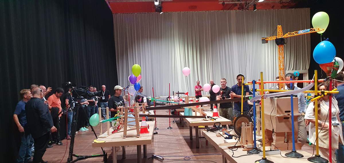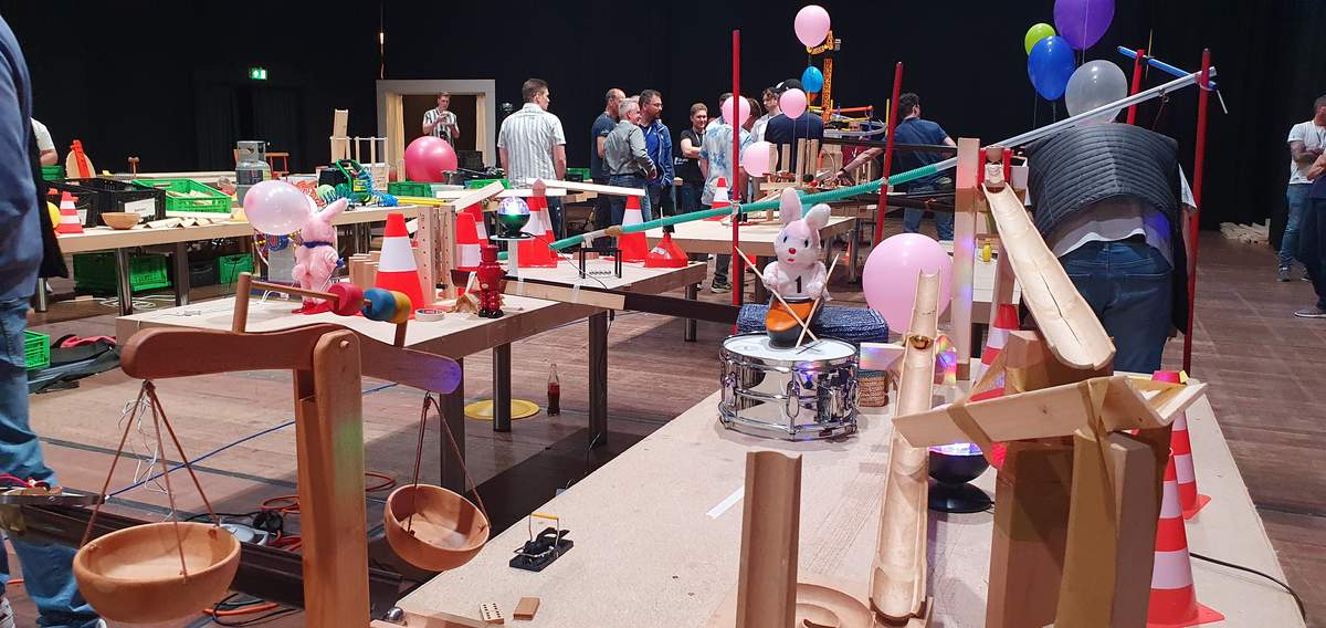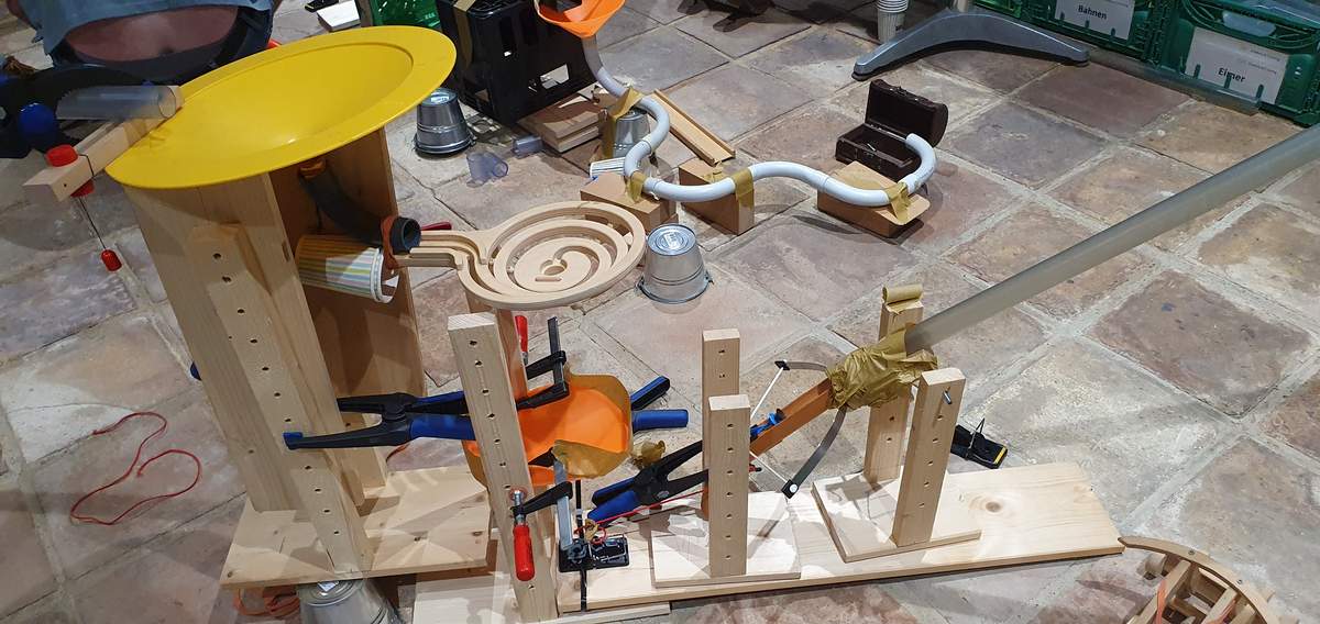 Bauen Sie in Kleinteams Teilabschnitte einer Kettenreaktion, die – mit den anderen Teams abgestimmt – zueinander passen und zu einen gemeinsamen Projekt verbunden werden soll.