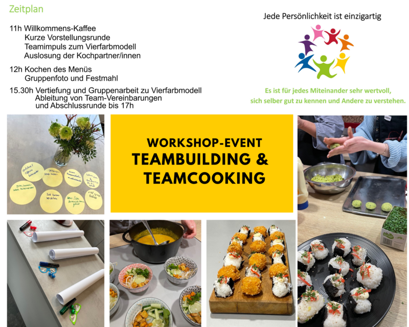 Genießen Sie das gemeinsame Team-Cooking in sehr schönem Ambiente - auch für Kochanfänger sehr geeignet!. Garantiert ein unvergessliches Team-Event mit viel Spaß und auf Wunsch auch Tiefgang!
