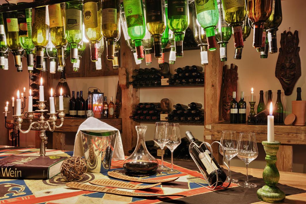 Die Weinprobe können Sie vor dem Abendessen, während dem Abendessen oder nach dem Abendessen reservieren. Sie können zwischen drei verschiedene Weine, vier verschiedene Weine oder sechs verschiedene Weine wählen. Außerdem können Sie die Weinrichtung entscheiden (Deutsche Weine, Südtiroler Weine, Südafrikanische Weine etc.)