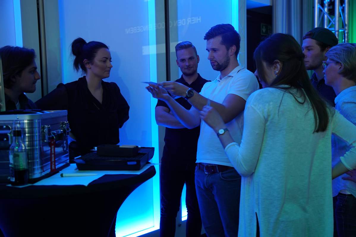 Durch die kurze Aufbauzeit (max. 1 Stunde - nach Absprache kürzbar) lässt sich Space Escape auch vor dem Meeting oder nach der Mittagspause spielen. Es werden lediglich ein (Steh-)tisch je Gruppe und drei Tische sowie eine Wand für eine Beamerprojektion benötigt.