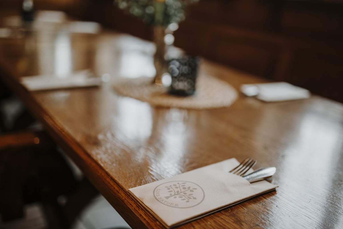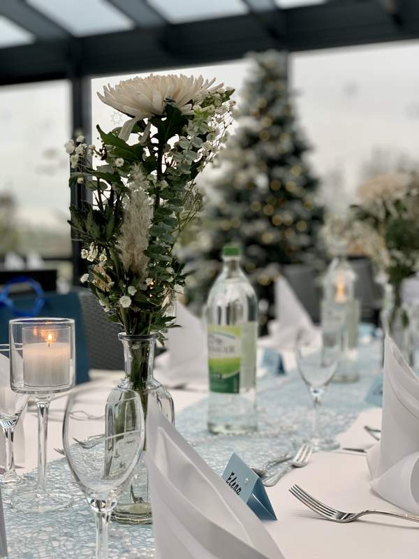 Unsere Küche zaubert für Sie und Ihre Gäste ein 3-Gang-Menü oder Buffet. Zum Abendessen erwarten Sie ...weihnachtlich gedeckte Tafeln mit weißen Stoffservietten.