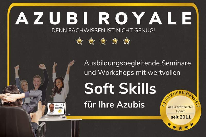 In potentialentfaltender Mission jagt AzubiCoach007, der Mann mit dem goldenen Händchen für Azubis, die NoGos im Integrationsprozess der zukünftigen Säulen Ihres Unternehmens. Mit einem Quantum an Tipps rund um die unschätzbar wichtigen Sozialkompetenzen macht 007 auch aus Ihren Azubis „Azubis Royale“.