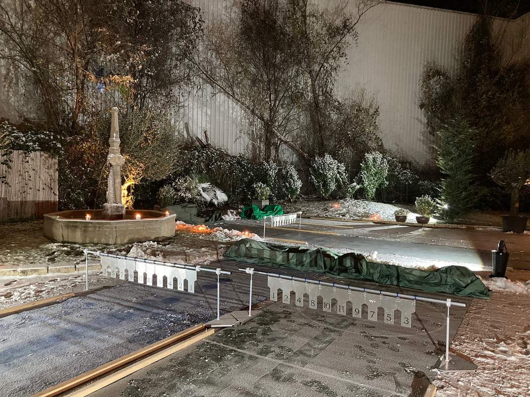 - Mobile Eisstockbahn (geeignet für Sommer und Winter)Unsere modernen und ökologischen Eisstockbahnen (12m lang/2m breit) lassen sich mobil an Ihrem Firmenstandort oder Ihrem Tagungshotel aufbauen und ganzjährig nutzen. Benötigt wird pro Bahn eine gerade Fläche mit hartem Untergrund, z.B. ein Parkplatz mit ca. 20 m Länge und 6m Breite.