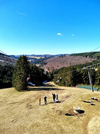 Zur Einstimmung auf den Tag unternehmen wir eine Führung über die Panorama-Erlebnisbrücke, die 25 m hoch und 435 m lang über der bekannten Bobbahn von Winterberg verläuft. Man erfährt einige interessante Informationen rund um den berühmten Tourismusort Winterberg. Danach brechen wir auf. Die Wanderung führt uns nun zum Höhenflug mit der Megazipline. Aufregung ohne Ende ist garantiert!