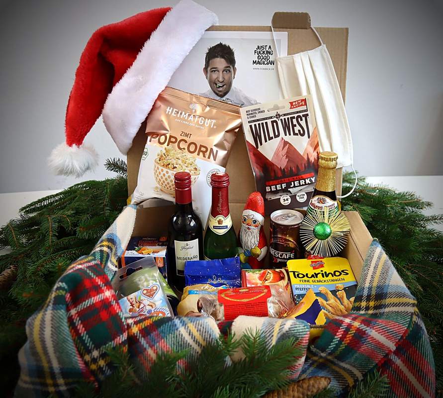 Im Mittelpunkt unserer virtuellen Weihnachtsfeier stehen unsere Weihnachtsbox und unser einmaliges Programm, mit dem wir Sie und Ihre Gäste unterhalten wollen. Erfreuen Sie sich an unserer Weihnachtsbox mit Leckereien, die Sie und Ihre Kollegen schon vorab per Post nach Hause geschickt bekommen. Alles, was man für einen schönen, leckeren und unterhaltsamen Abend eben braucht. Daneben haben wir ein... einzigartiges Programm für Sie zusammen gestellt. Alles live! Eine interaktive Zaubershow und z.B. ein spannendes Weihnachtsquiz mit Preisen für die Gewinner. Ein schöner Live-Abend dargestellt über eine starke und sichere Online Plattform wie z.B. Zoom.