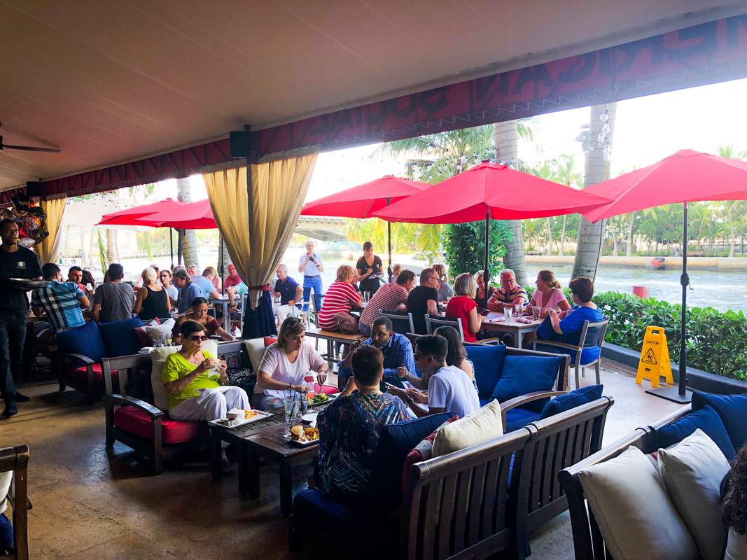 Abendessen gibt es in einem berühmten Steakhouse – mit Blick auf Fisher Island.
