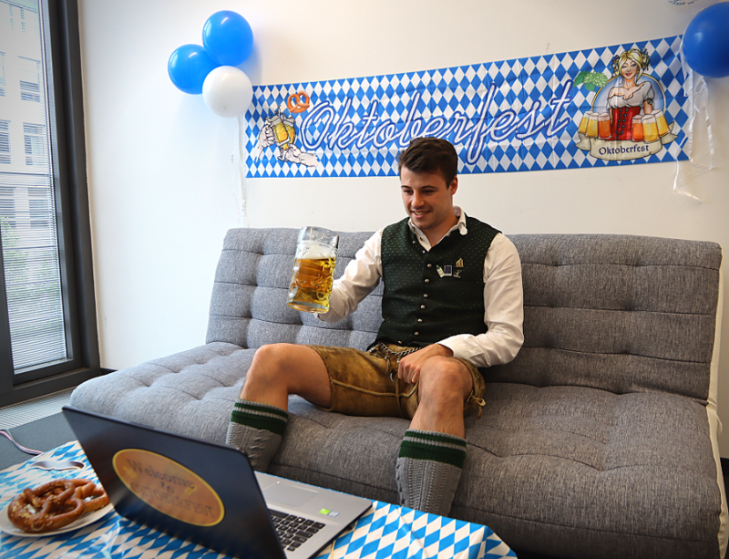 Laden Sie Ihr Team, die Madln, Buam und Spezln (Kunden, Partner und Gäste) zu einem unvergesslichen virtuellen Oktoberfest ein. Schlagen Sie Ihr „Zelt“ direkt bei sich zu Hause, im Office oder auf dem Balkon auf. Das Schöne mit dem Nützlichen verbinden – trotz Einschränkungen. Die Teilnehmer können sich im Voraus auf eine – je nach gebuchten Paket – Wiesn-Schmankerl-Eventbox mit prickelnden Inhalten, kleinen Überraschungen und Aufmerksamkeiten freuen. Unser virtuelles Oktoberfest mit Ansprachen, Präsentationen, einem Wiesn-Quiz, einem Bier-Tasting oder einem Weißwurstfrühstück mit selbstgebackenen Brezen wird ein ganz besonderer und außergewöhnlicher Moment für Sie und Ihre Kollegen. Erfreuen Sie sich auch diesen Herbst an einer ordentlichen Gaudi bei einer Online Wiesn und mit erfrischenden Getränken.