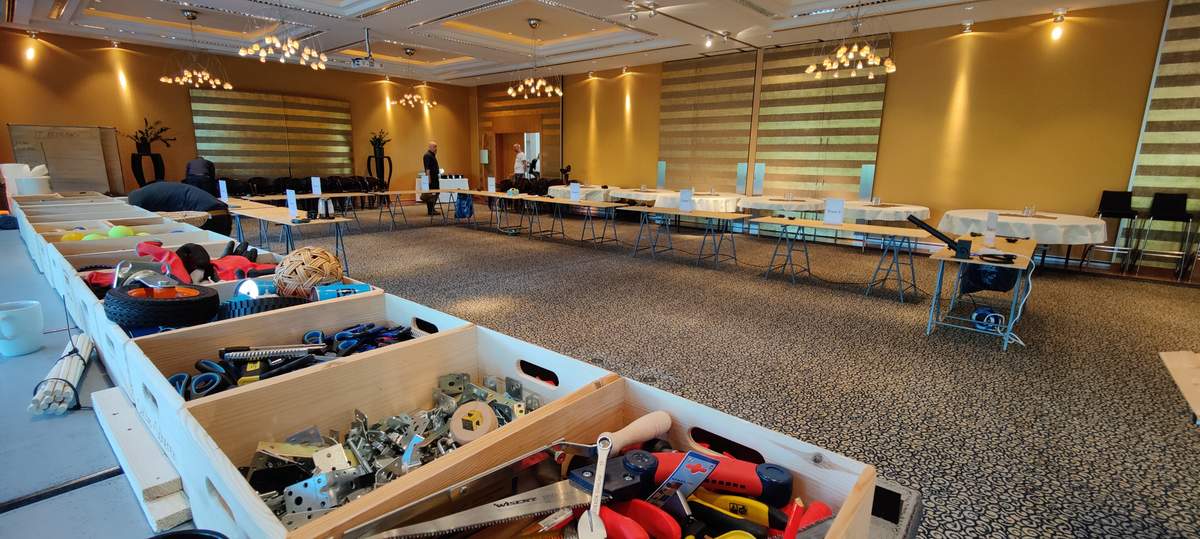 Doch die Durchführung hat es in sich..., denn es kommt auf jedes Detail an. Für jeden einzelnen Abschnitt gibt es eine zum Motto passende Anforderung , die vom gesamten Team nur mit Spaß, Kreativität und Innovationsfreude in die Tat umgesetzt werden kann. Zusätzlich müssen für eine reibungslose Funktion, alle Schnittstellen zwischen den einzelnen Abschnitten koordiniert werden. Neben dem benötigten Werkzeug und Baumaterial, steht den Teilnehmern und Teilnehmerinnen ein Fundus an unerwartetem Equipment zur Verfügung, damit dem Einfallsreichtum keine Grenzen gesetzt werden. Und sollte es doch einmal etwas stocken, stehen unsere erfinderischen Teambetreuer mit Rat und Tat zur Seite.