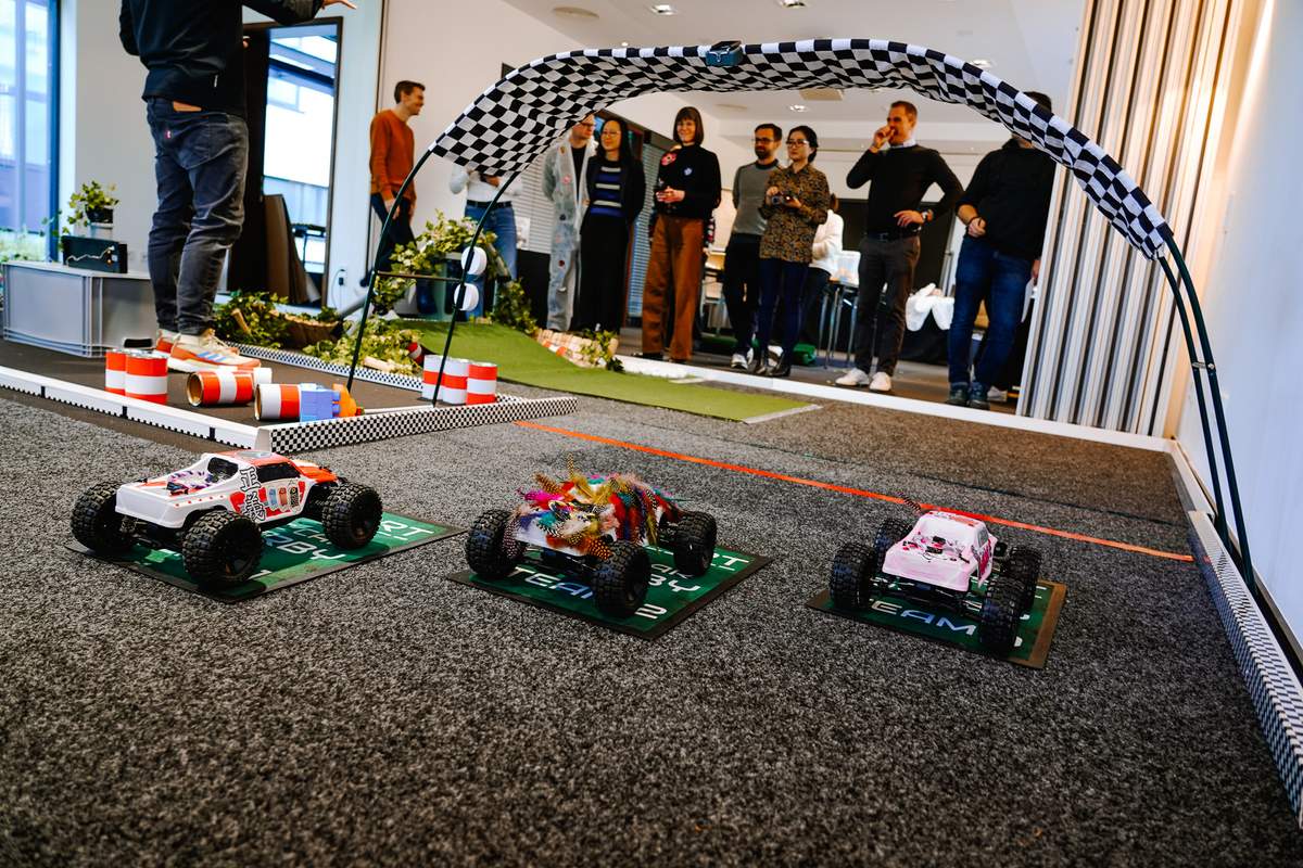Designen Sie im Team ein eigenes ferngesteuertes Modellauto und einen Teil der gesamten Rennstrecke.