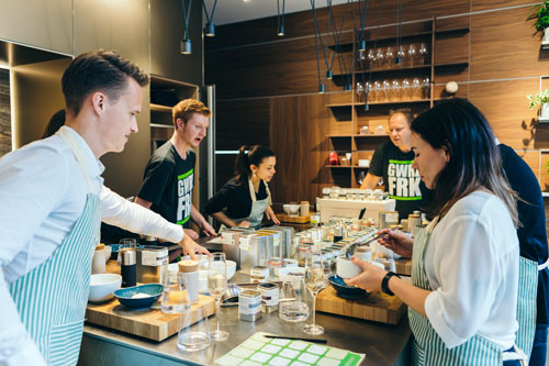 STEP 3 : Wir gehen zusammen die Zutaten durch, beachten die Vorlieben jedes Teilnehmers, kontrollieren die Gewichtung und geben jeder Mischung das gewisse Etwas mit.