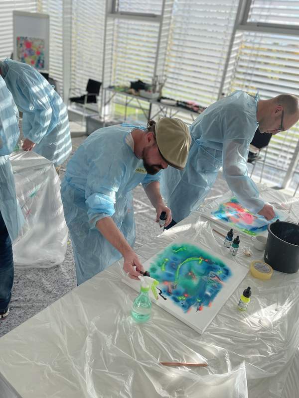 Das besondere an diesem Workshop ist das freie Malen. Es gibt kein vorgegebenes Bild das gemalt werden soll. So entfällt der Erfolgsdruck und die Teilnehmer können sich fallen lassen und frei mit der Farbe experimentieren. Doch wie geht man mit so viel Freiheit um?