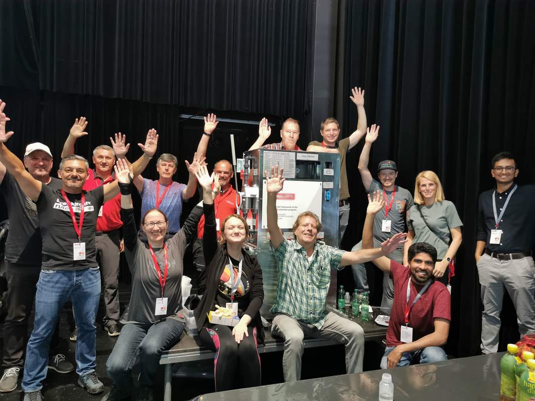 - Abschlussfoto mit Anlage und KreativbildAm Ende werden Fotos erstellt welche auf das Kreativbild geklebt werden. Dieses Bild geht an die Schule in Uganda die, die Wasserfilteranlage erhält.