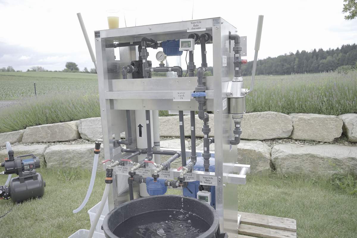 - Stationäre Anlage aus Alukonstruktion mit Ultrafilter (0,015 µm Membrangröße – menschliches Haar 4.000x größer)