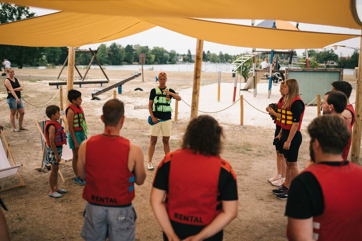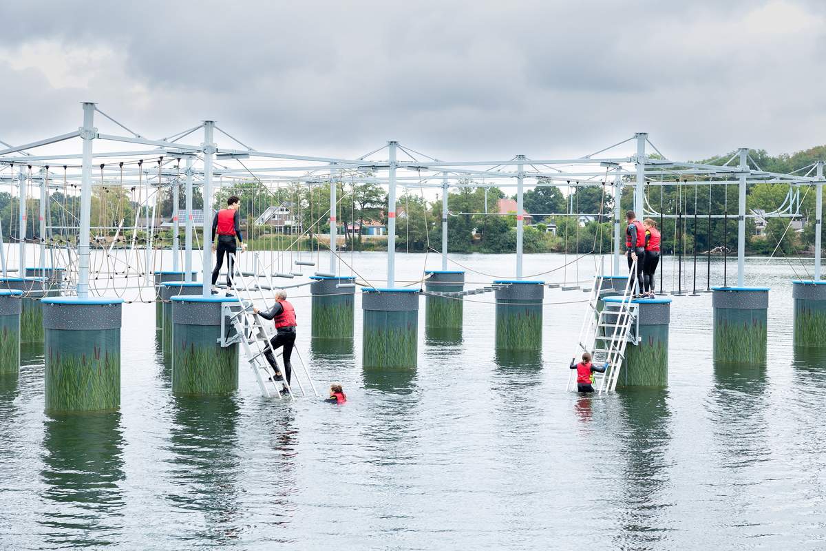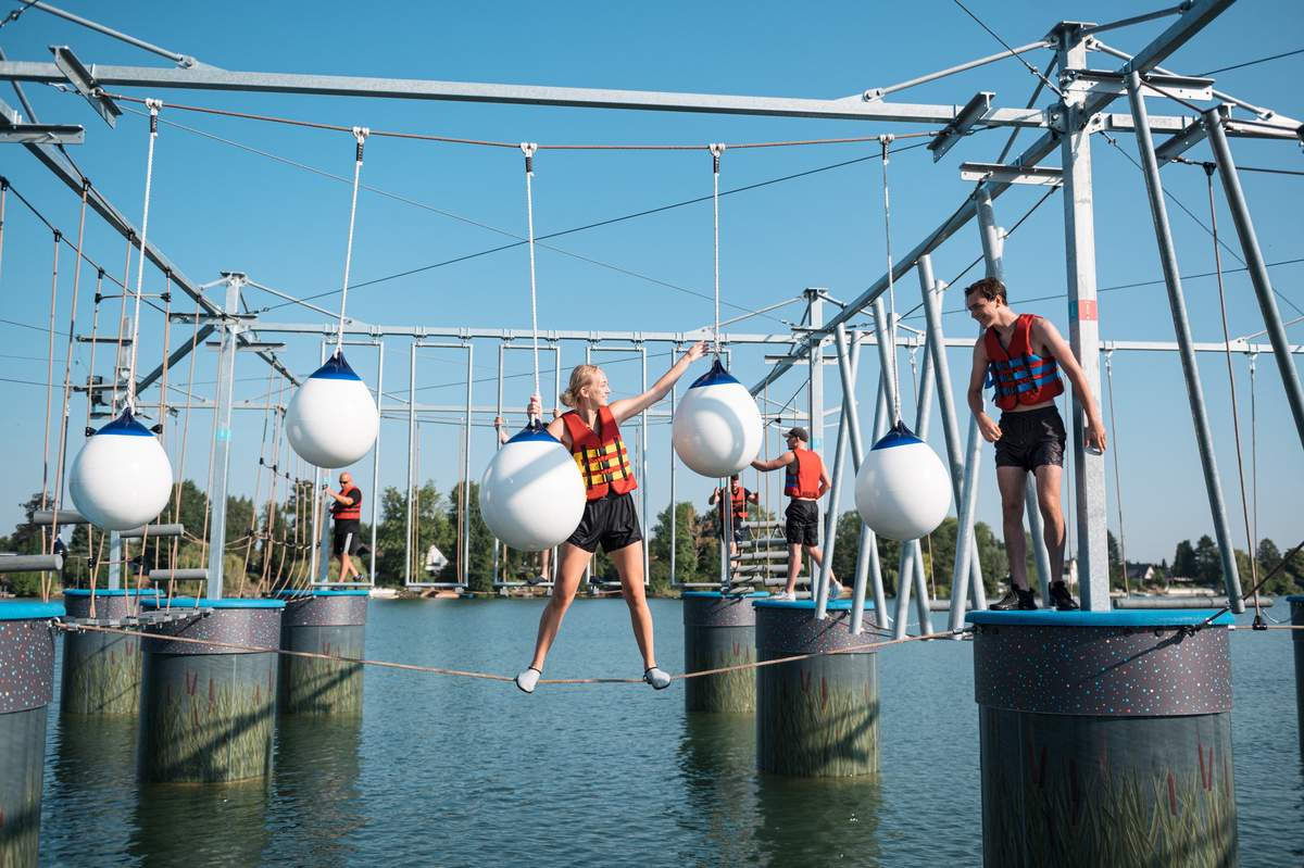 Ihr erlebt mit eurer Gruppe eine ganz besondere Outdoor-Aktivität: ein einzigartiges Kletterabenteuer in luftiger Höhe kombiniert mit Badespaß. Auf insgesamt 192 Metern und drei Schwierigkeitsgraden ist für jeden Tarzan und jede Jane etwas dabei. Geklettert wird auf unserer Anlage, die mitten im traumhaften Badesee liegt und die Location bietet außerdem Sandstrand, Außengastronomie und vieles mehr. Nach dem gemeinsamen Klettern muss also lange noch nicht Schluss sein. Selbst Übernachtungsmöglichkeiten stehen euch zur Verfügung.