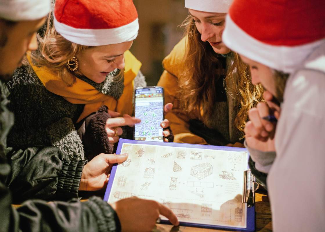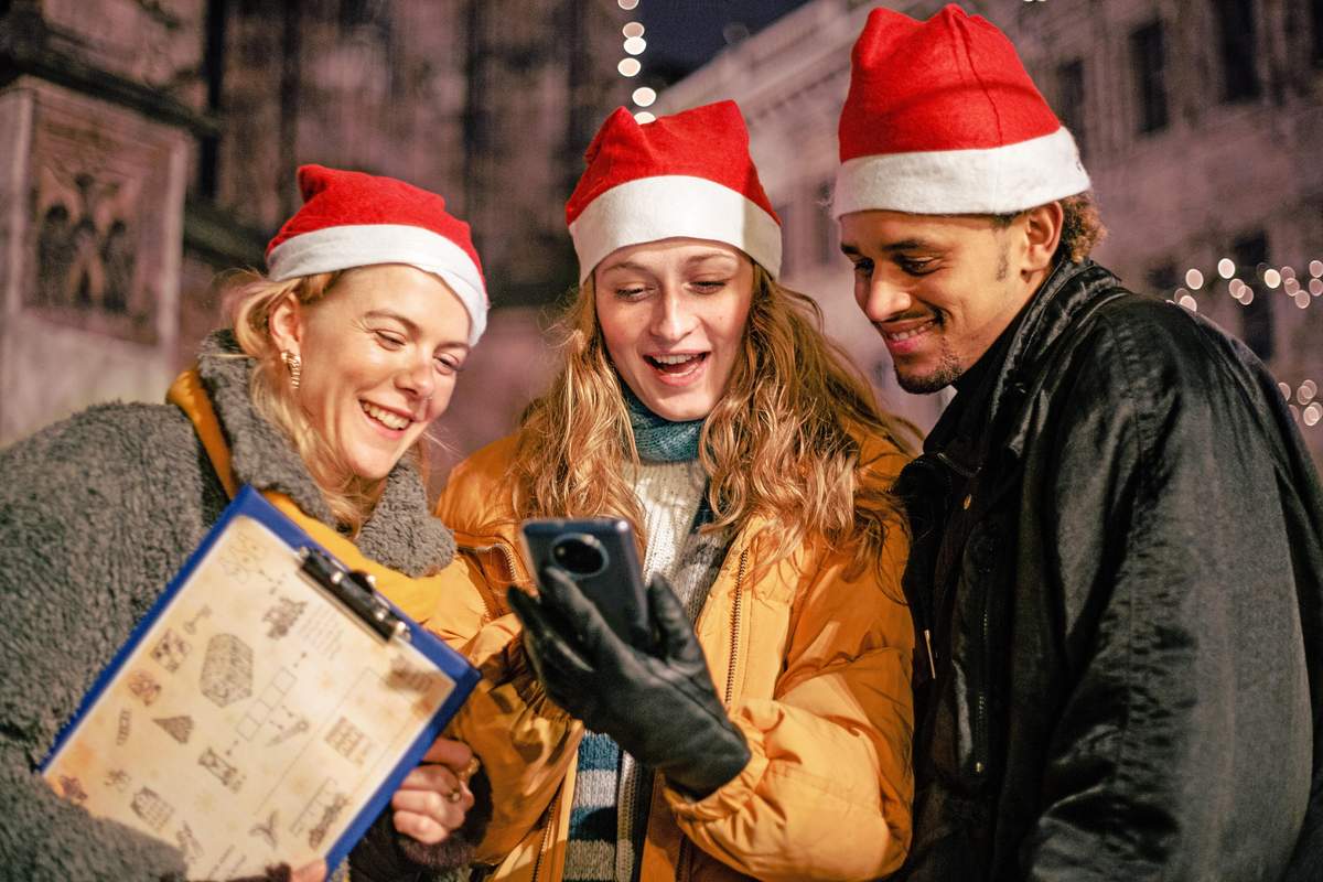 Weihnachtszeit ist Spielezeit! Erleben Sie das Spielgefühl einer Schnitzeljagd kombiniert mit einzigartigem Weihnachtszauber – und das an der frischen Luft! Gemeinsam mit Ihrem Team begeben Sie sich auf eine weihnachtliche Schatzsuche in einer Stadt Ihrer Wahl. Ausgerüstet mit Smartphone und Scharfsinn finden Sie geheime Hinweise, knacken weihnachtliche Rätsel und erleben den Zauber der Vorweihnachtszeit. Doch Vorsicht: Auch andere Schatzsucher sind auf der Jagd nach dem geheimen Weihnachtsschatz! Wird es Ihnen und Ihren Mitstreitern gelingen, ihn als erste zu finden?