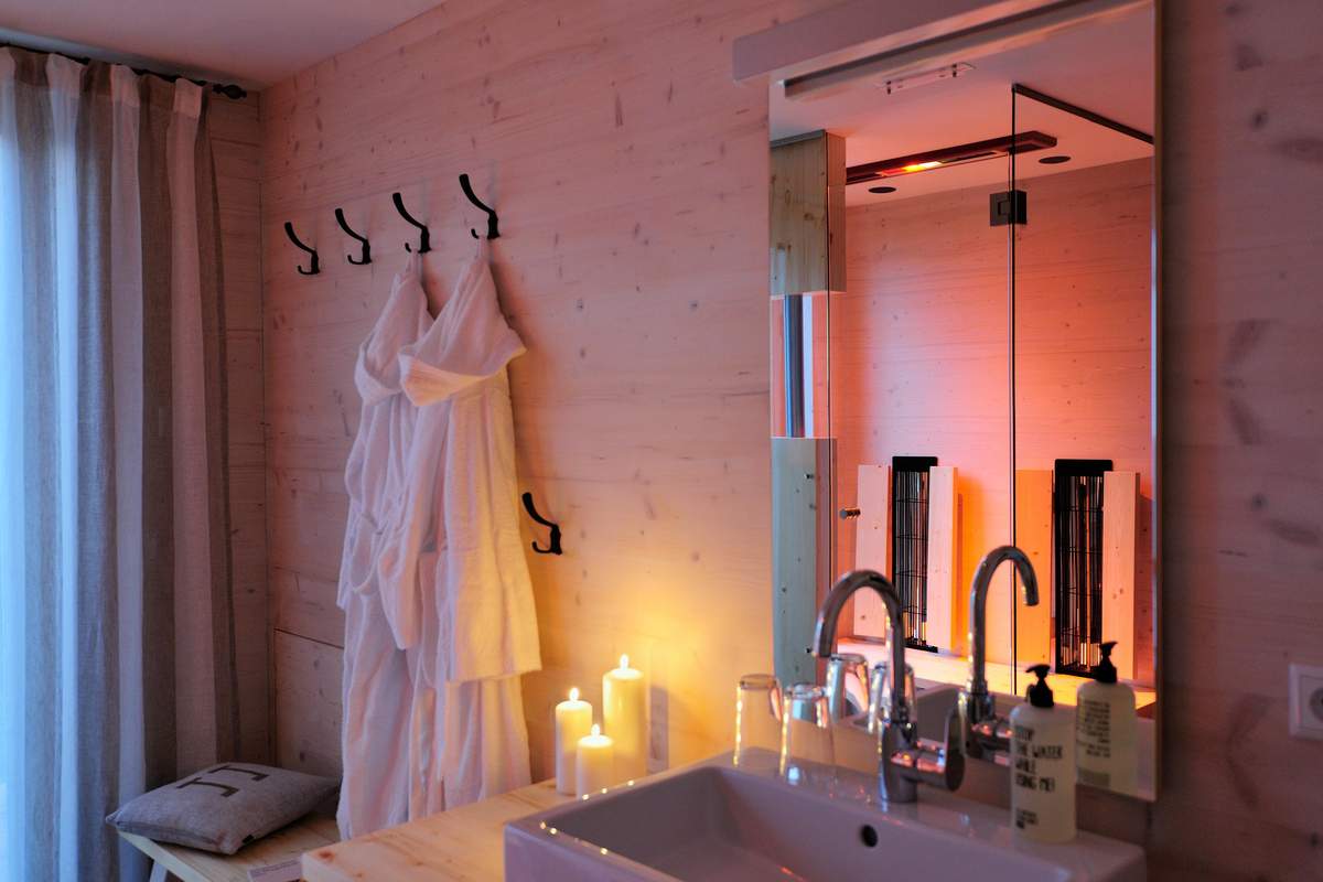 Das Erholungsgefühl beginnt mit dem ersten Schritt in Ihr Vollholz-Chalet: erholsame Stille, wohltuende Wärme, behagliche Atmosphäre. Mit dem offenen Wohnraum, der bestens ausgestatteten Küche, einem privat-Spa mit Infarotkabine, wahlweise mit Jacuzzi und der kuschligen Sitzecke am Kamin, sind die stilvoll eingerichteten Ferienhäuser eine echte Wohlfühl-Oase.... Luxus bedeutet hier Nähe zur Natur, Ruhe und Zeit. Zeit zum Lesen, Zeit zum Essen, Zeit für den Partner. Die hainichhöfe machen es möglich.