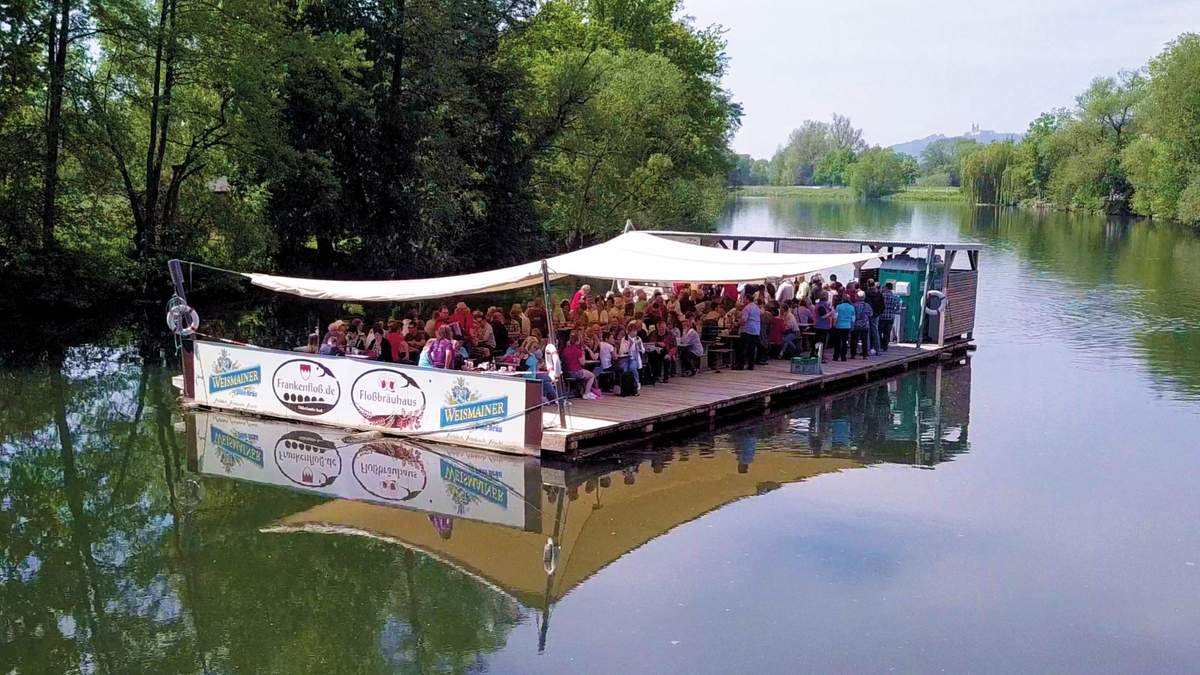 eigene Faust, bevor wir zur Floßfahrt starten. Eindrucksvoll, massiv und urig gemütlich – das ist das Frankenfloß. Die langsame Floßfahrt entlang der schönen Region ist ein geselliges Ereignis mit Stimmungsmusik, Verpflegung und freien Getränken – natürlich mit süffigem Landbier. Genießt es!