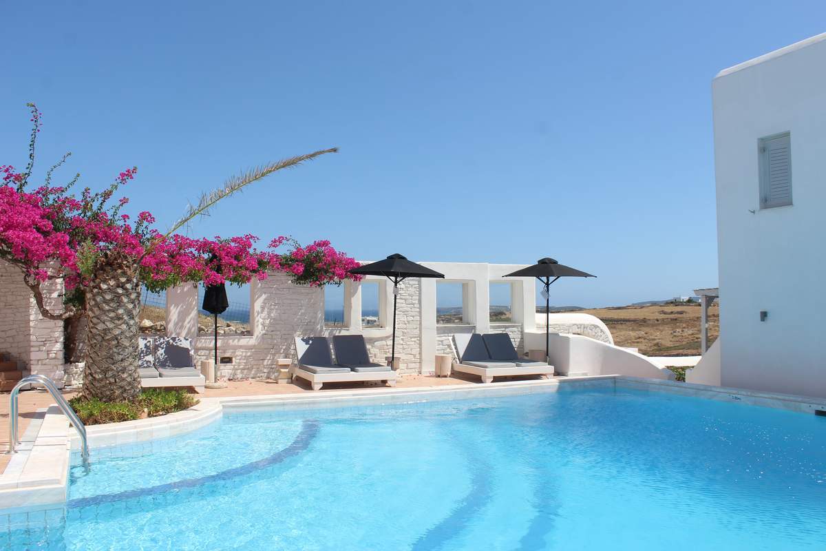 - Luxushotel mit spektakulärem Blick auf die Ägäis und eigenem Zugang zum Strand.