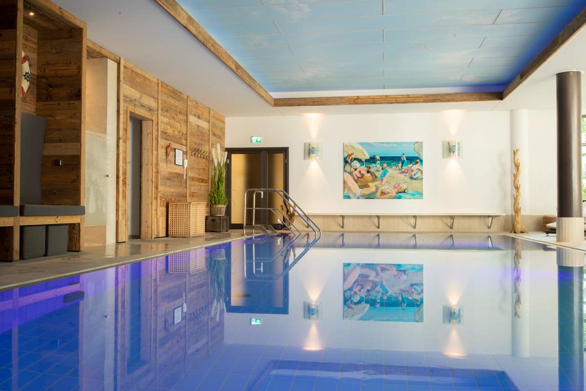 Der Wellnessbereich mit Schwimmbad, großer finnischer & Bio-Sauna sowie einem Außen-Whirlpool sorgen für Wohlbefinden ebenso wie die bioaktiven Zimmer speziell für Allergiker.