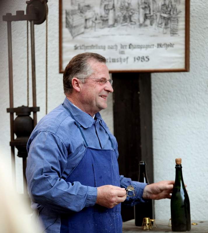 Das Wein- & Sektgut Wilhelmshof stellt seit 50 Jahren Sekte nach der aufwändigen Methode champenoise, der klassischen Flaschengärung aus eigenen Trauben her. Lernen sie mit Winzer Thorsten Ochocki die über 50 Handgriffe kennen, von der Sektfüllung bis zum Degorgieren (dem Enthefen) der Sekte.